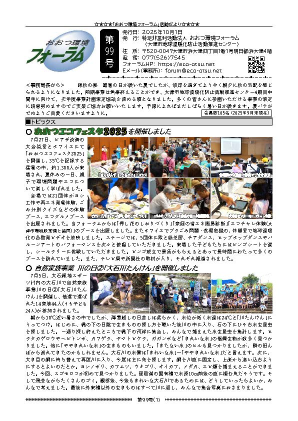 令和7年7月27日(日)、ピアザ淡海にておおつエコフェスタ2025を開催しました。 猛暑の中、多くの方々がご参加くださいました。ありがとうございました! 会場の様子を写真でご紹介いたしますね。 おおつエコフェスタでは、会 […]