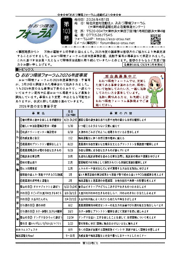 令和7年11月14日(金曜日)、おおつ市民環境塾講座8「今なお発電続ける蹴上発電所見学会」を開催しました。 琵琶湖から京都へ続く疏水の先にある、関西電力株式会社蹴上発電所と琵琶湖疏水記念館を見学しました。 お天気も良くて […]