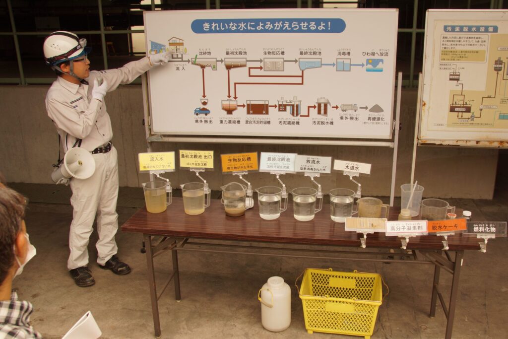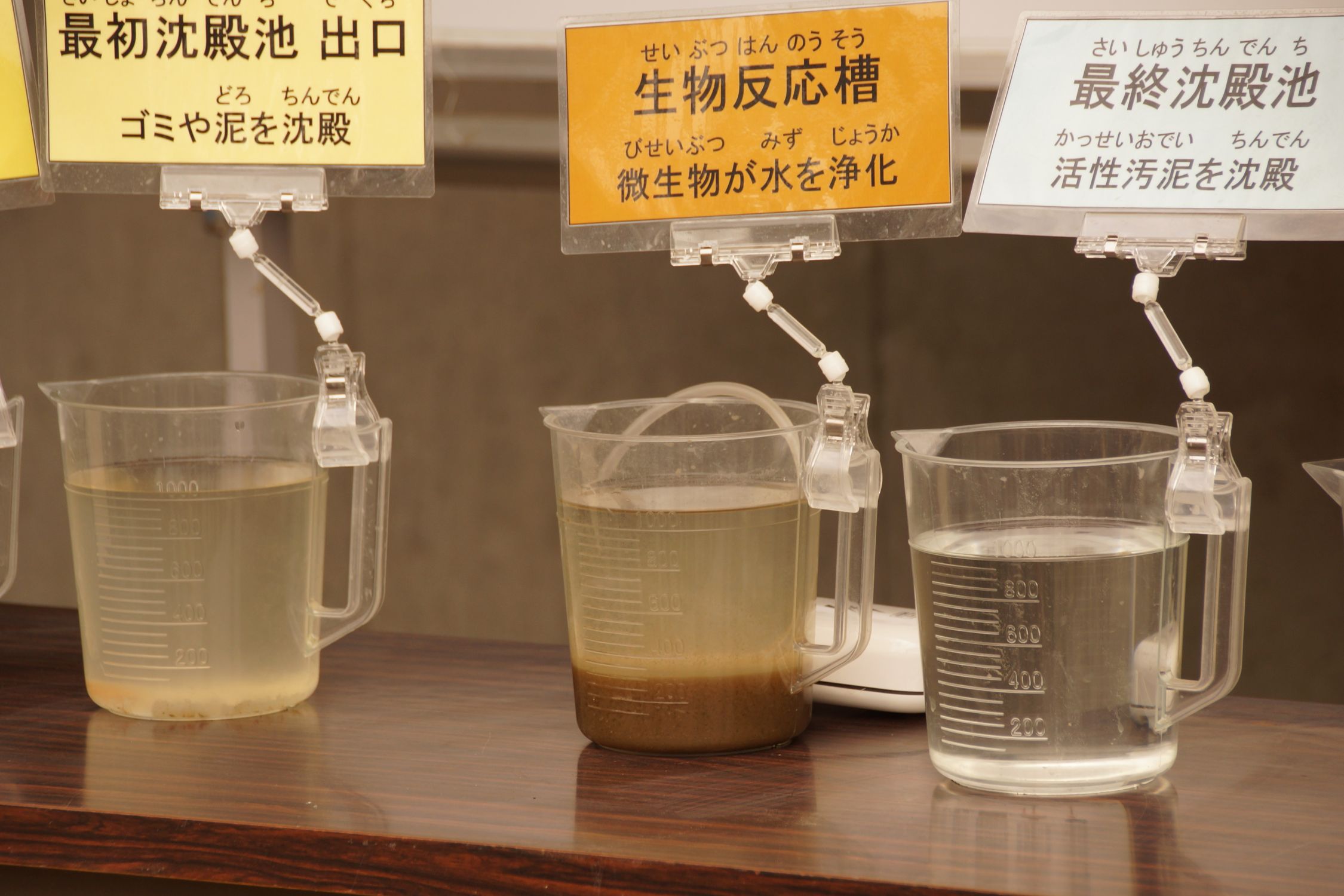 汚水が再生される状況が、ビーカーサンプルで一目瞭然でした!