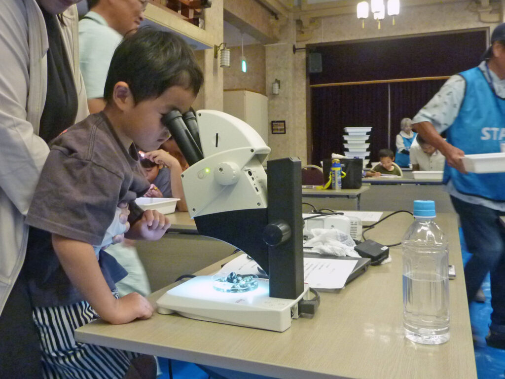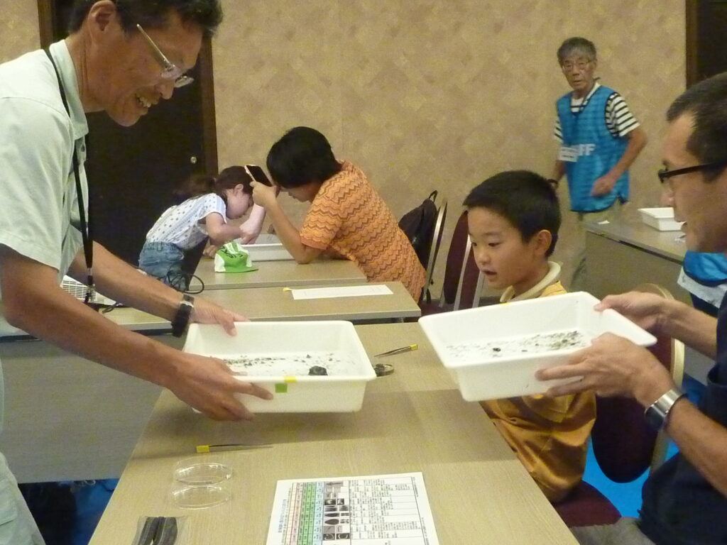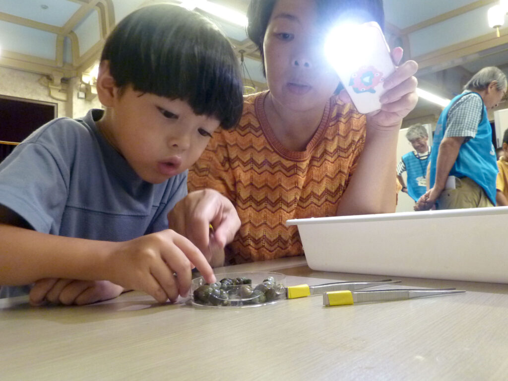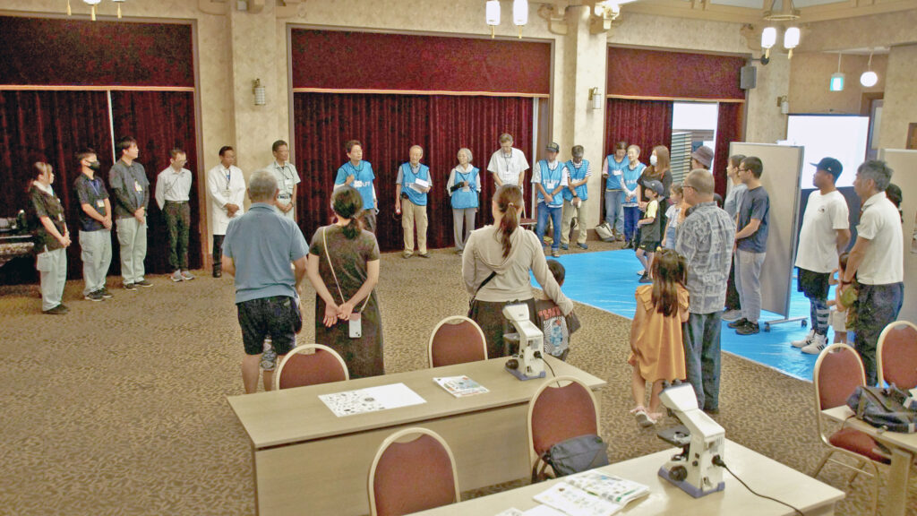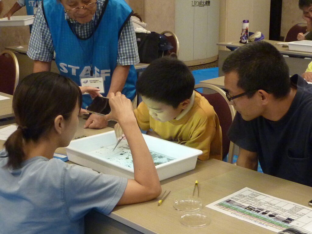 受付を済ませ…プランクトン班と底生生物班に分かれていきます。たくさんの生きものを見つけられるかな?