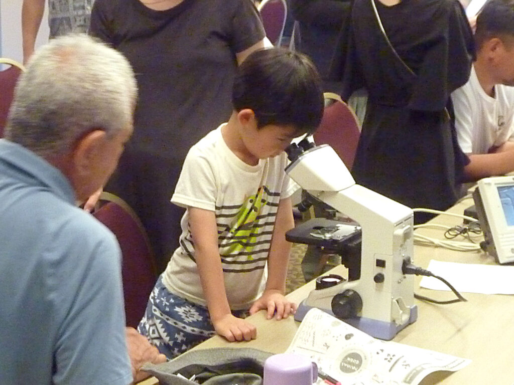 先生も顕微鏡を覗きこみ、どこだどこだと探します。