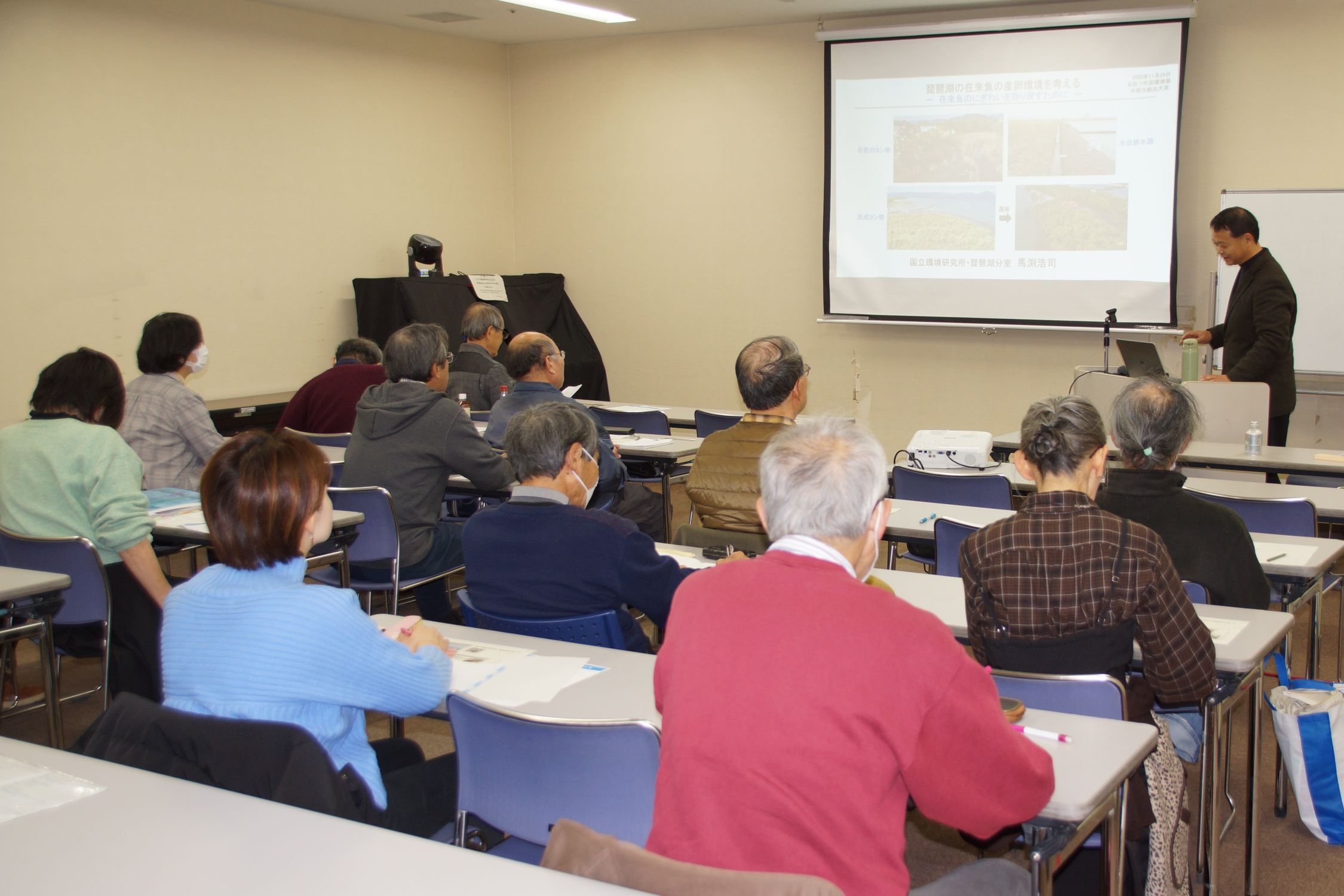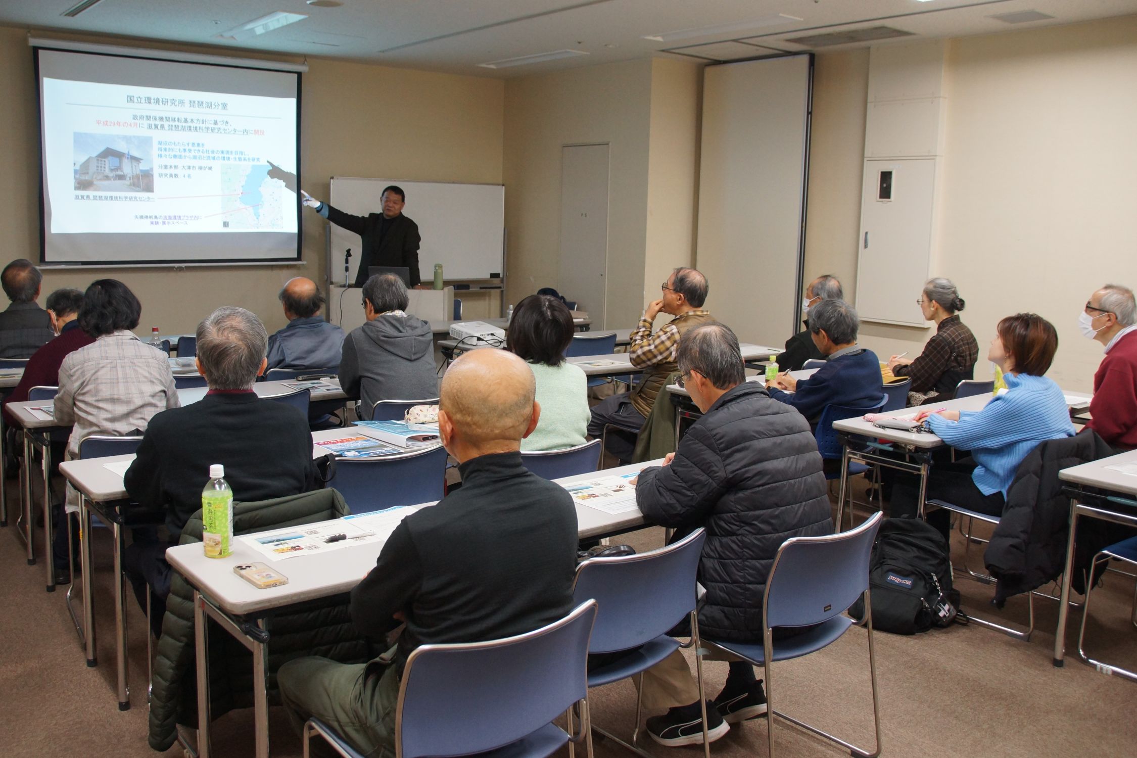 今回の講座では、国立環境研究所琵琶湖分室の馬渕浩司さんを講師にお迎えし、最新の調査結果をたっぷりとお話しいただきました 。